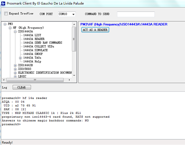 According to your preference, you can use the official "Command Line" or "Proxmark Tool.exe" to operate