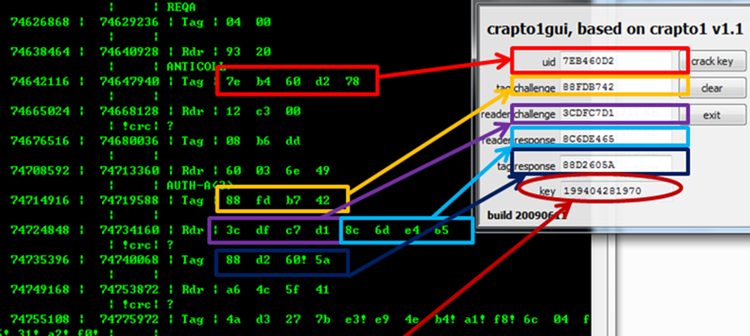 1. Silent sniffer data communication between the M1 S50 card and card reader, analytical secret key.