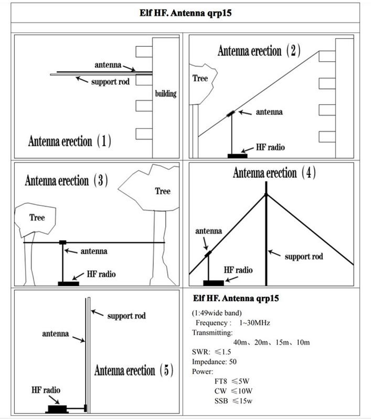 Portable Mini ELF HF.Antenna QRP15 1-30MHz HF Antenna 50ohms Support 40M/20M/15M/10M Transmitting