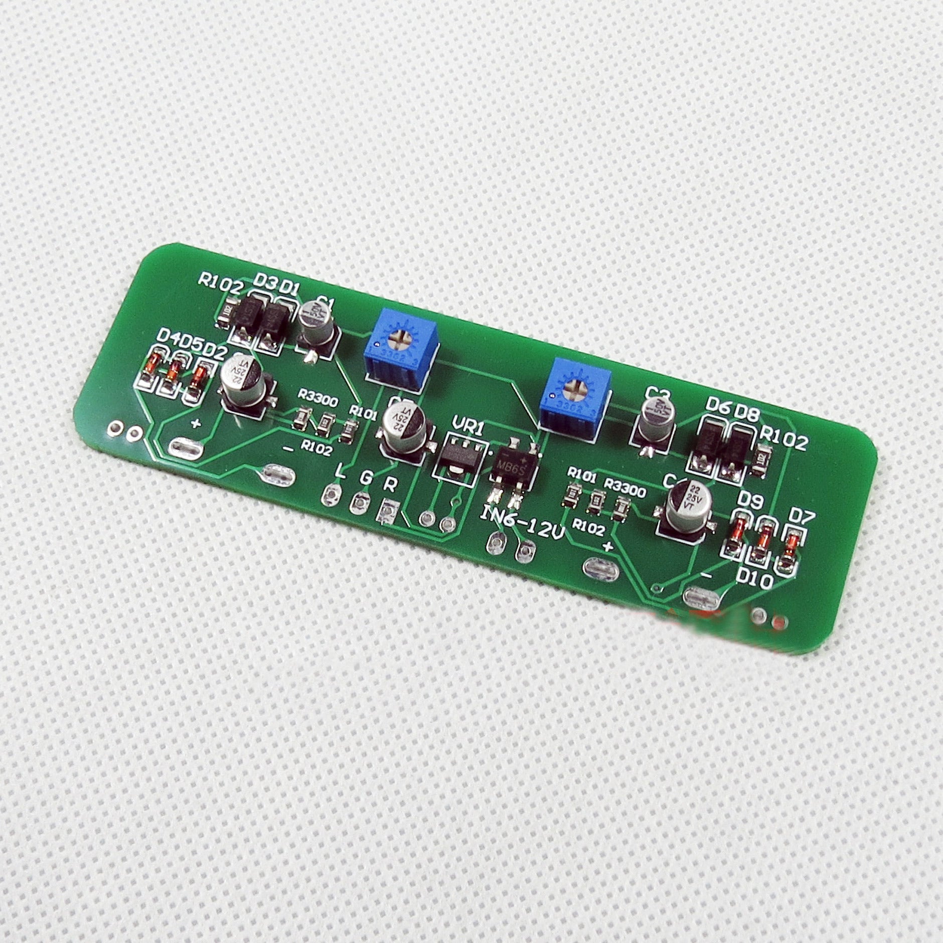 -Direct power amplifier output (that is, connected in parallel to the speaker terminal), the backlight voltage can be 5V to 12V, AC and DC can be used, the "R1" and "R2" adjustable resistors on the driver board are used to adjust the amplitude of the pointer jump.
