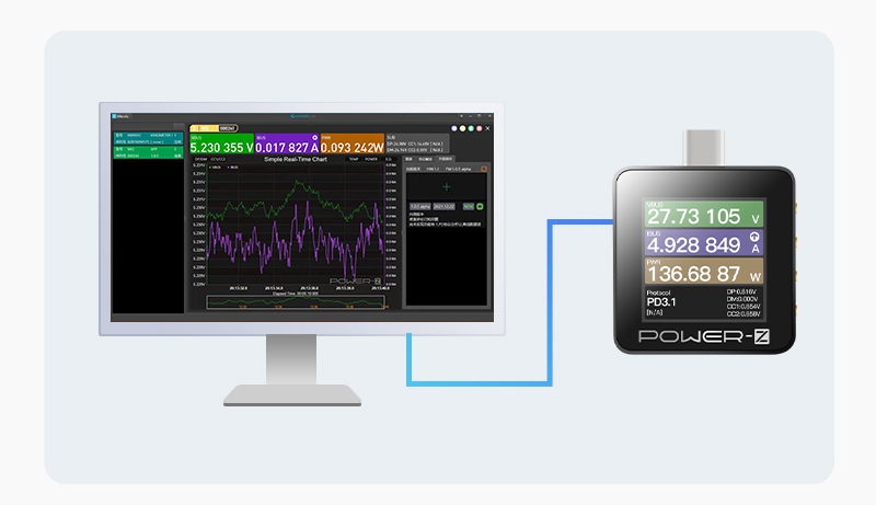 - Powerful host computer: visualized graphical interface display; USB PD handshake protocol analysis; online viewing of charging power; local storage of charging data; online update of the host computer; support for the multi-open function of the tester