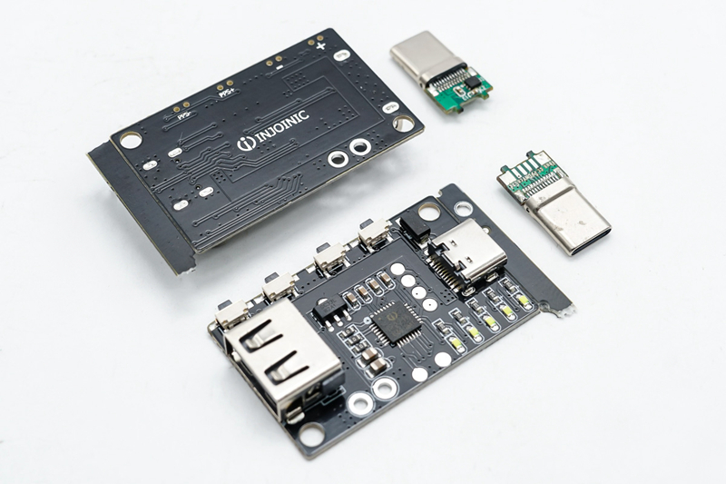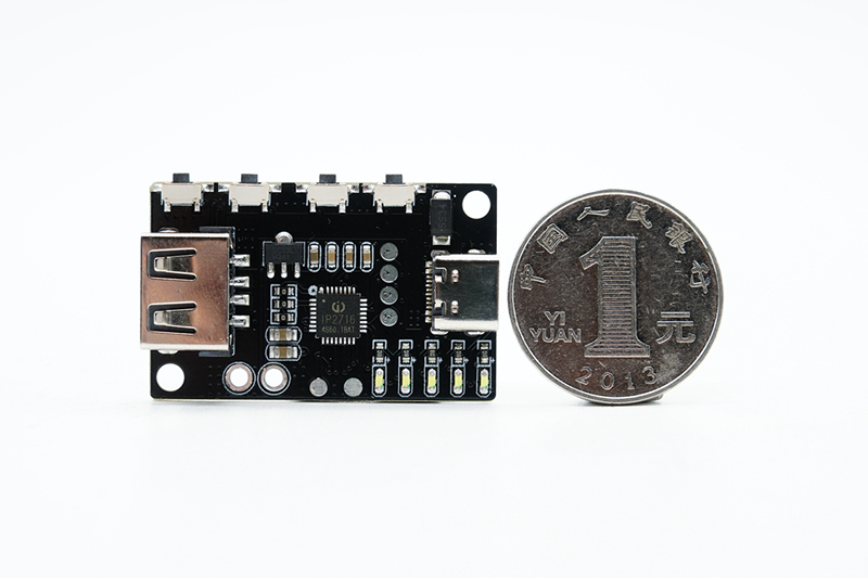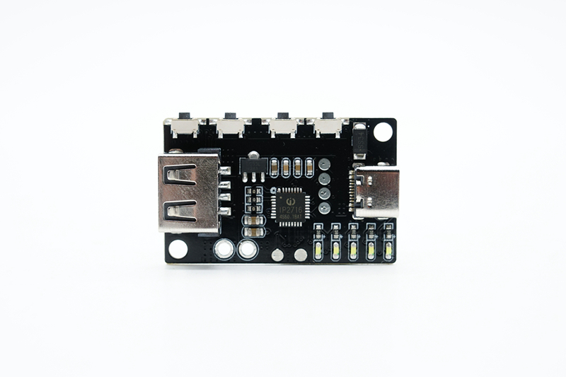 With a super compact design, the size of its entire PCB board is only 1.6x1" (40x25mm). In addition, the components on the PCB board are also very simple, and the core device IP2726 chip for INJOINIC is used.