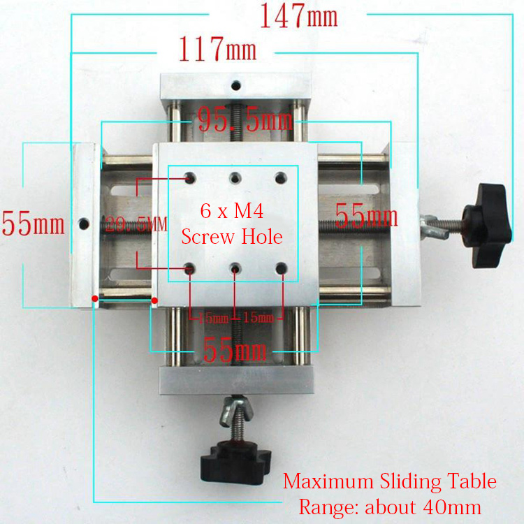 - This mini manual sliding table is made from CNC machined aluminum alloy with linear screw rail ensure precision movement. mini size 40mm working stroke and 4X29.5mm fixing slot enable you to install it on the machine's table easily and it is ideal for mini drill press or milling machine.