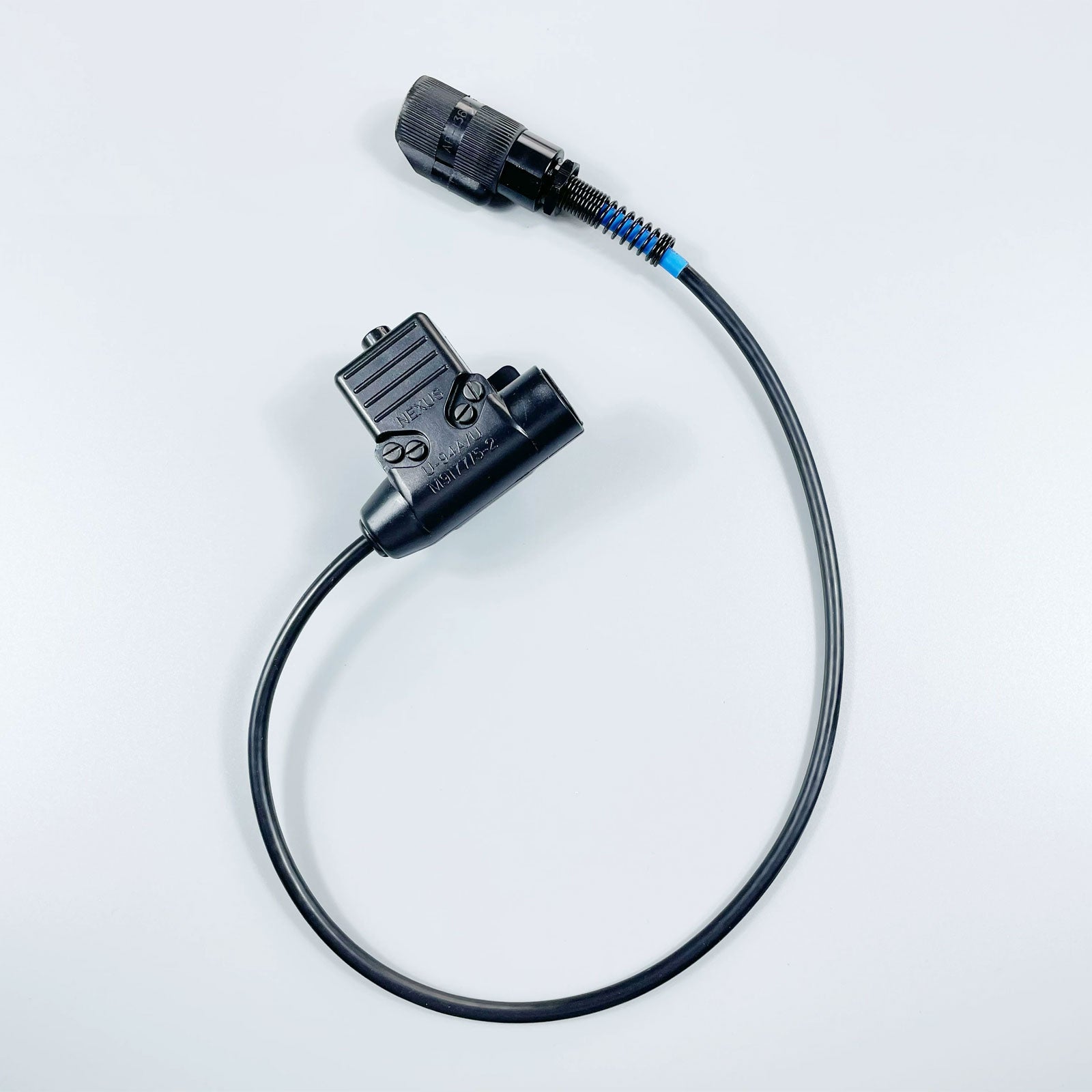 The PTT adapter is made by PRN Precision Industry. The push to talk adapter is a replica of the original 6-pin U94 PTT for 3M. It has many differences from the common 6-pin U94 PTT adapters, such as cable length, cable diameter, blue sheath, plug style, shape of cable protective sleeve, screw color, sticker, etc.