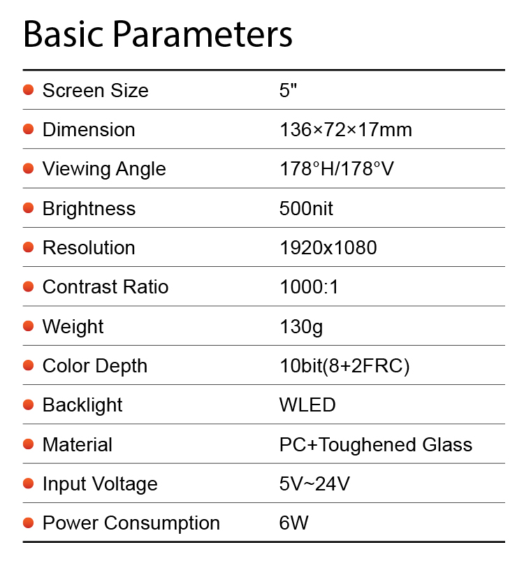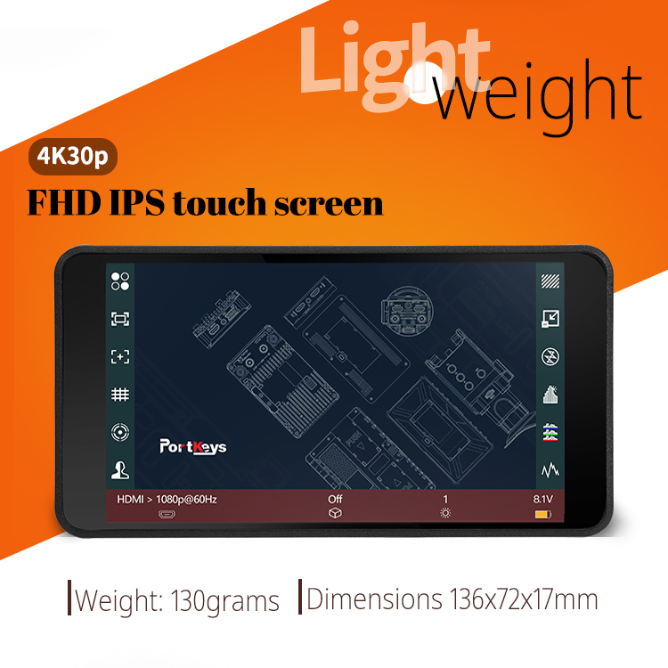 PT5 Camera Monitor HDMI Camera SLR 3D LUT 4K 30P 5-inch FHD IPS Touch Screen Compatible with NPF for SONY and E6 for Canon