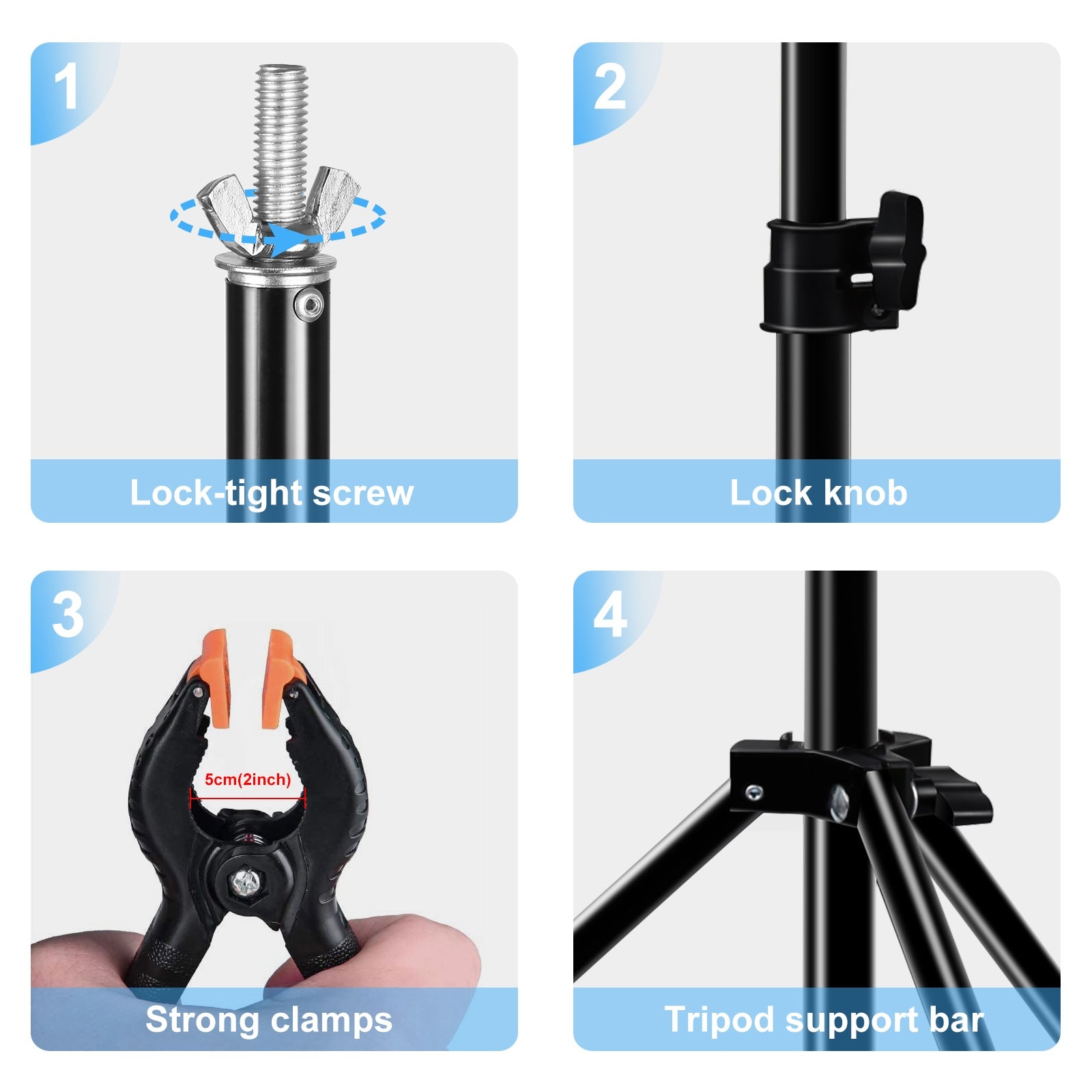 4. The height (37-65cm) of the background frame can be adjusted by adjusting the tripod