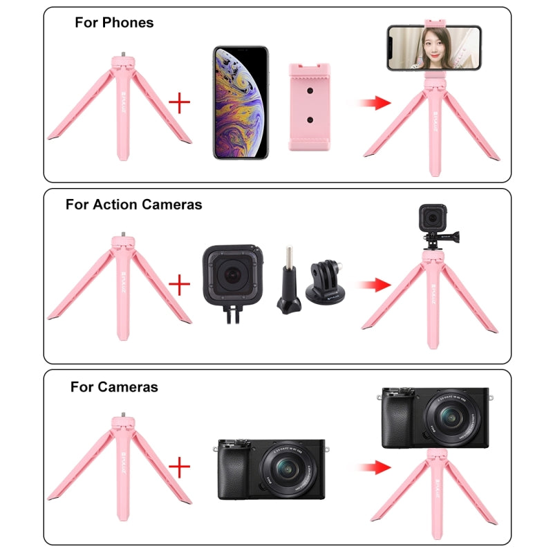 PU506 Mini Tripod Plastic Desktop Tripod With Phone Clamp For Live Stream Events Smartphones Cameras