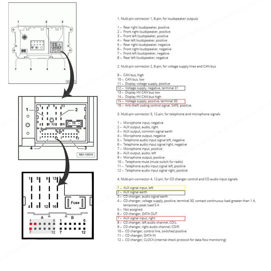 PUZU Car DSP Amplifier Wiring Harness Special-Tail Line Socket For VW Passat/Porsche/Audi/BMW