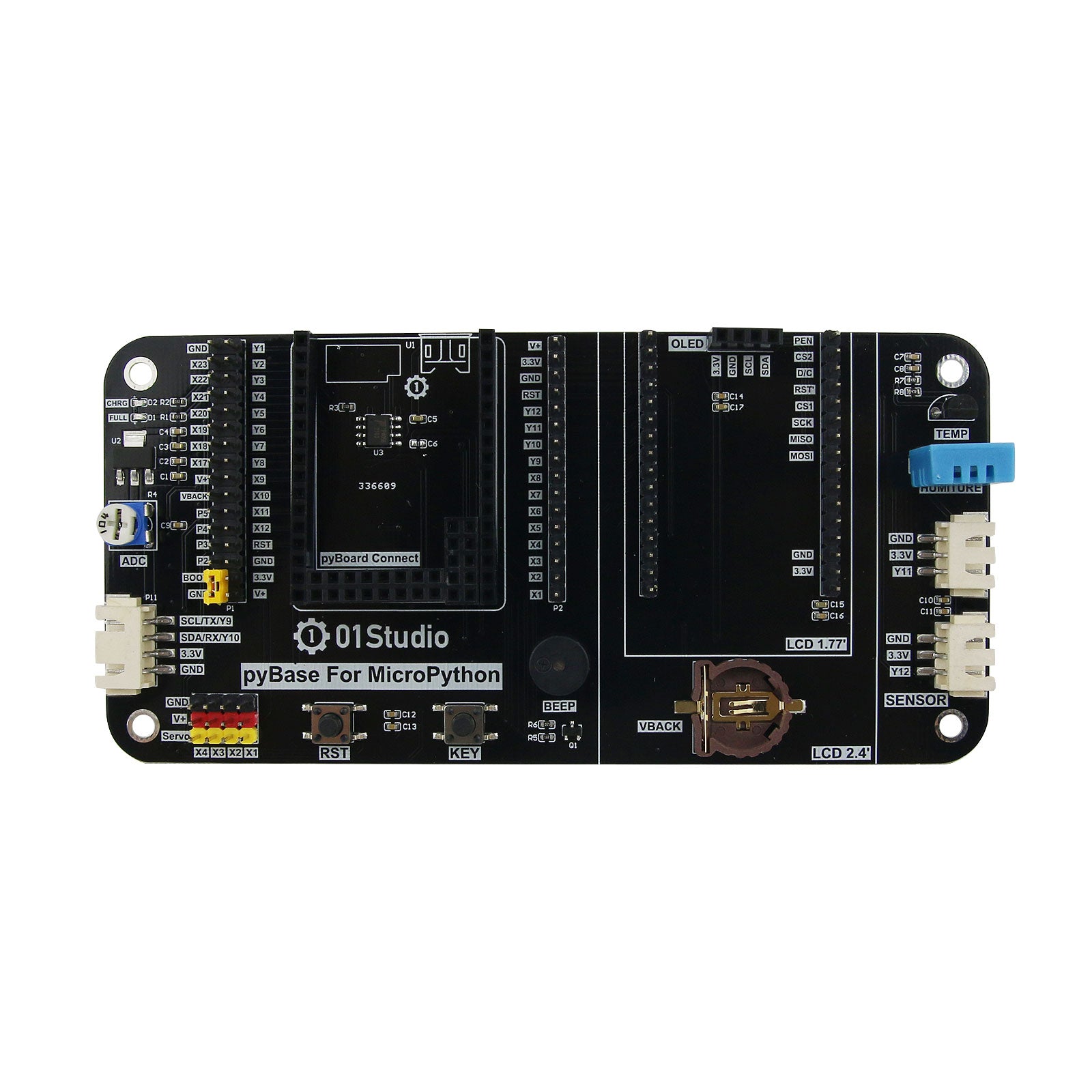 It is a base board which is specially designed for pyBoard. With rich on-board resources, pyBase is designed with interfaces for powerful compatibility.