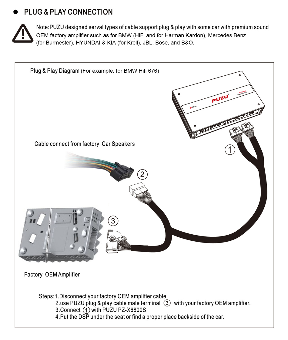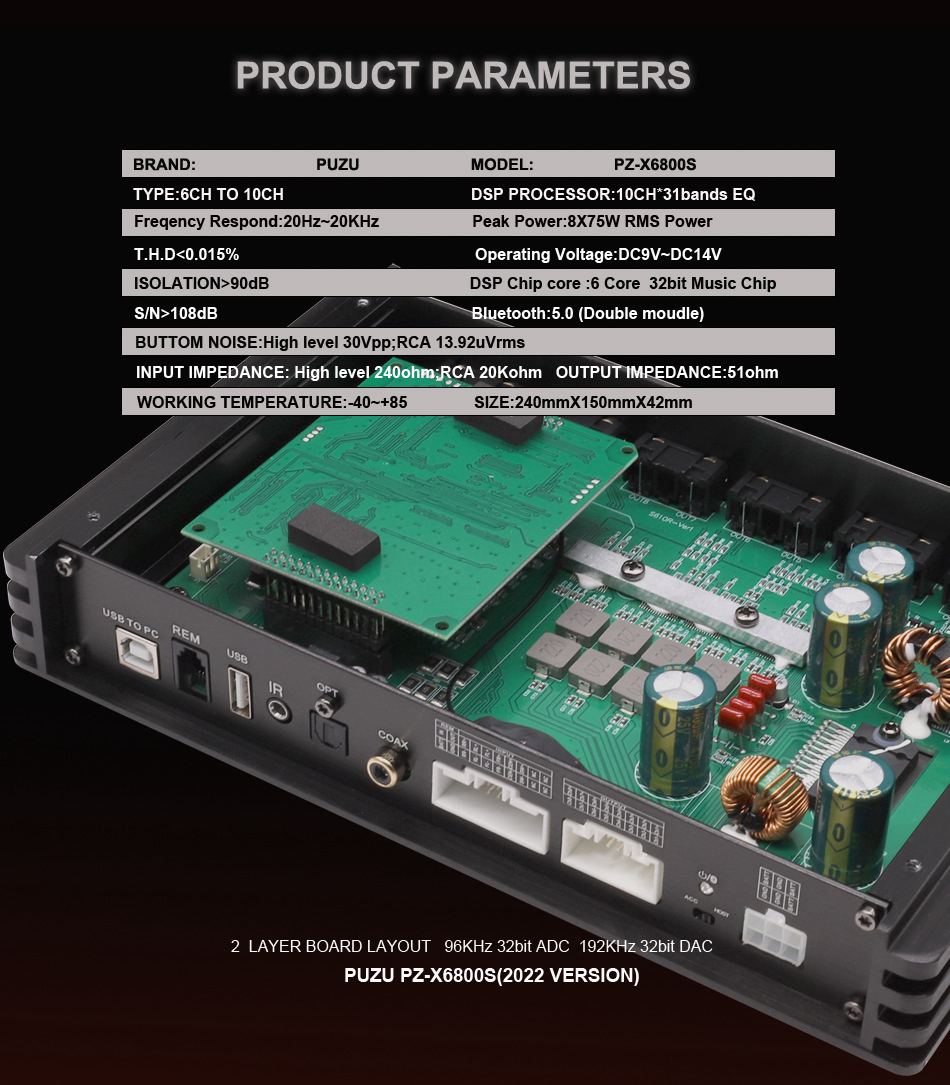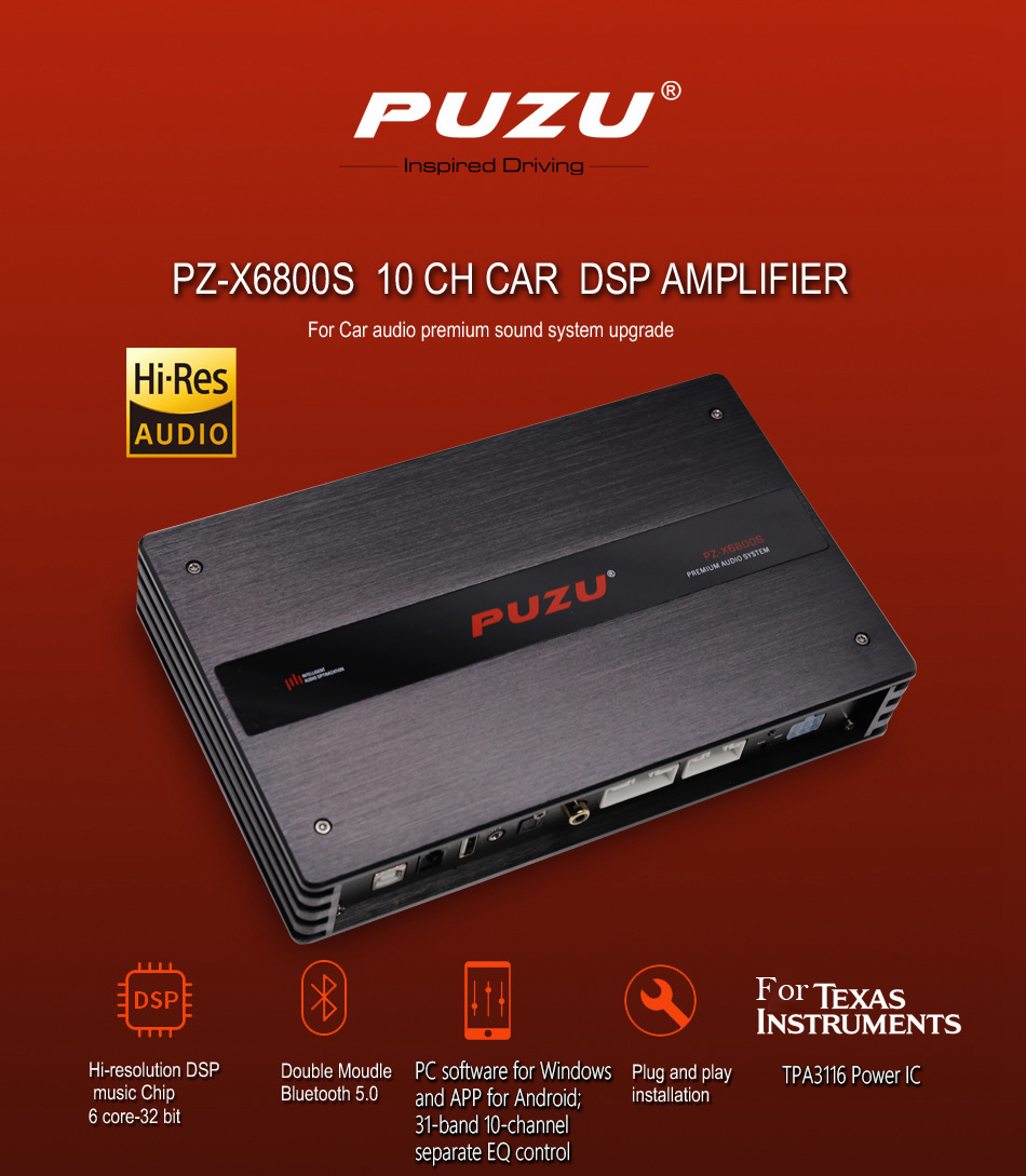 PZ-X6800S is a Premium Car Audio 8CH Amplifier with 10CH DSP Processor upgrade for cars with factory OEM Amplifiers, such as for Bose, JBL, Harman Kardon, BMW HiFi, L7, Burmester, Infinity, Dynaudio, etc.