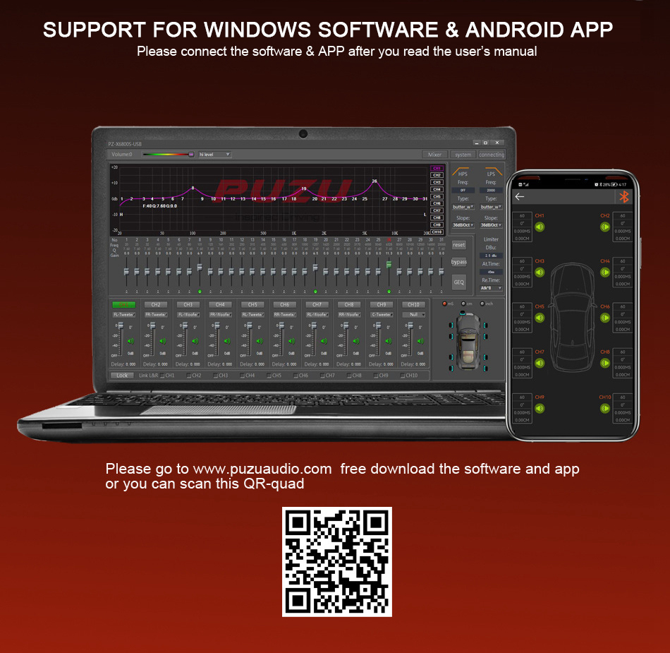 PZ-X6800S delivers an extremely compact sound power plant in a shapely housing with astonishing 8 channels power output, including a freely configurable 10-Channel DSP. 6ch high level input with 10ch output freely input & out mixer. PZ-X6800S Amp offers multi upgrade solutions for you, CH1~CH4 with 4X50W RMS which you can drive for your normal speakers like tweeter and rear door speakers and CH5~CH8 with 4X75W output power which you can drive for your under seat woofers and front door speakers. The compact sound miracle is particularly suitable for loudspeaker systems in 3-Way active operation. With the DSP, the crossover frequencies, time alignment and frequency corrections can be perfectly adjusted.