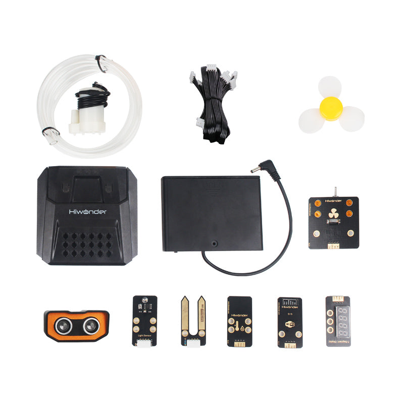 - 18 Electric Modules: There are 18 electronic modules, including fan module, pump module, temperature humidity sensor and soil sensor. They can be used with cloud terminal and cellphone APP to realize IoT functions such as smarter watering flowers and temperature humidity detection. No programming is needed.
