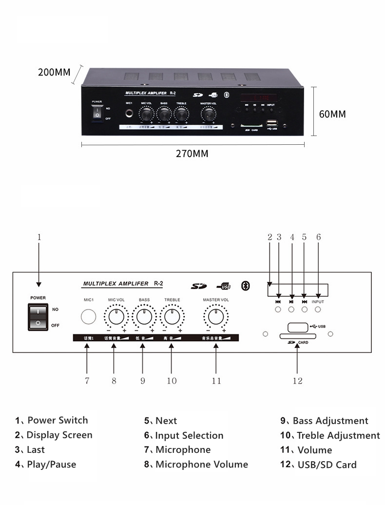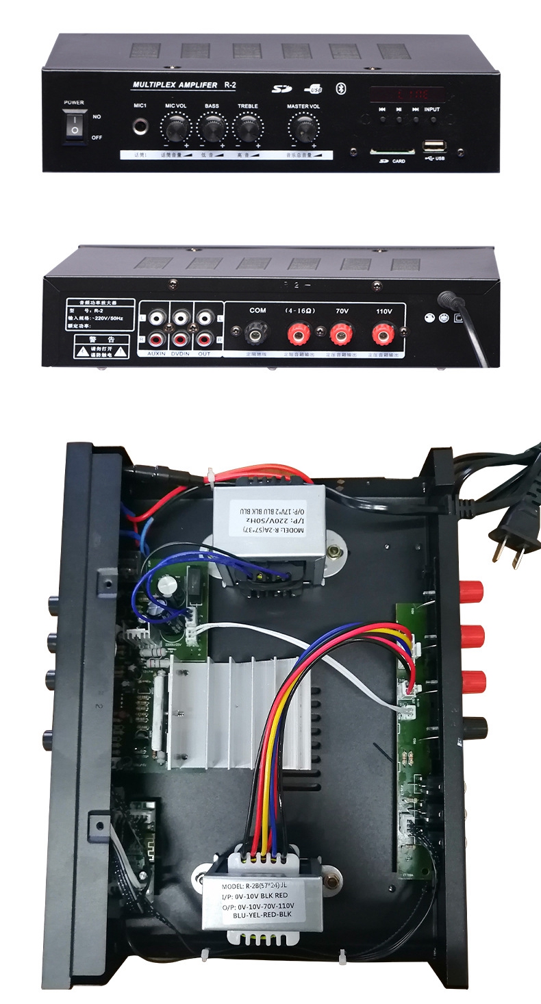 R-2 60W Professional HiFi Audio Power Amplifier Constant Voltage Audio Player Support Dual Microphone Input