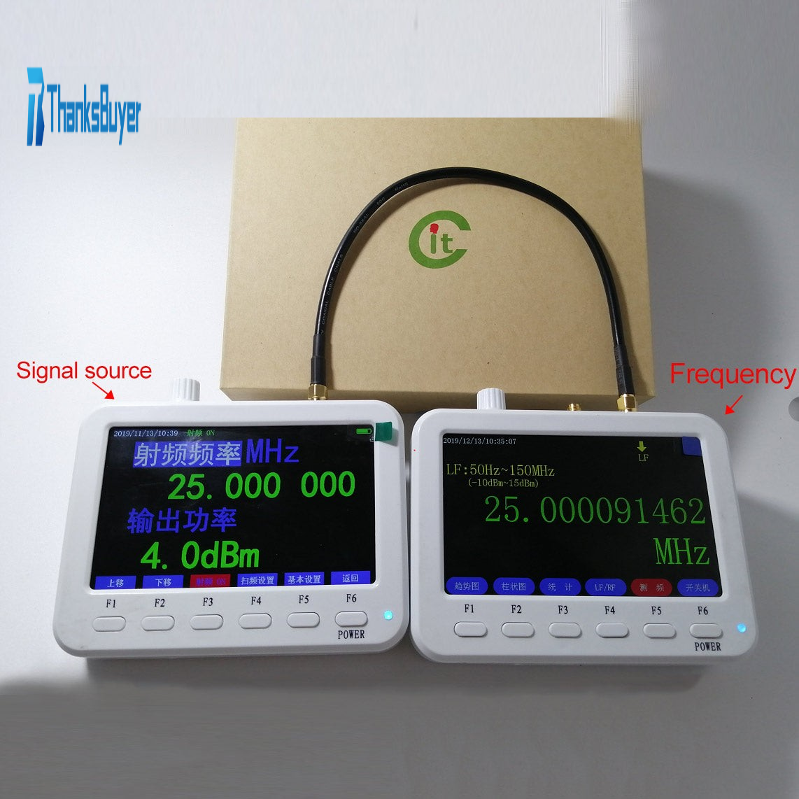 - Frequency sweep output: 100ms / 1s / 10s interval, adjustable start frequency, stop frequency, step frequency and transmit power