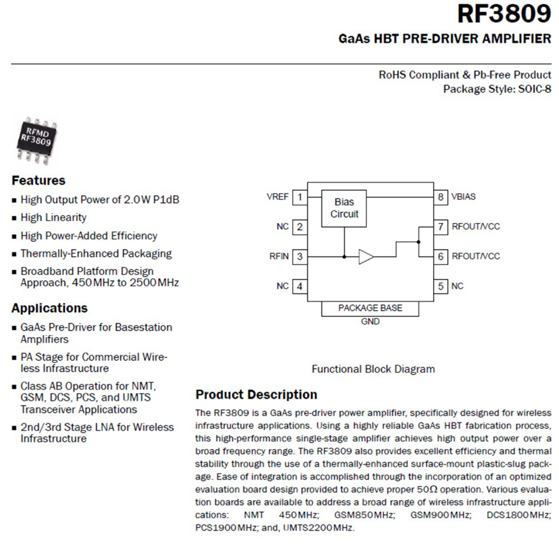 RF3809 Broadband RF Power Amplifier Module 2W High Frequency (400-2500MHZ)