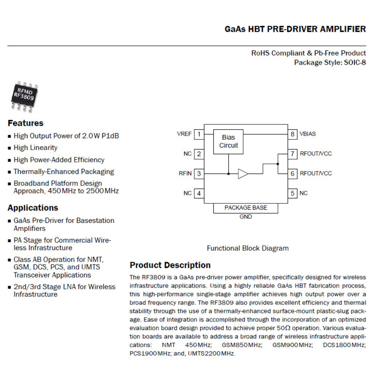 - P1dB=33dB-2W@960MHz
