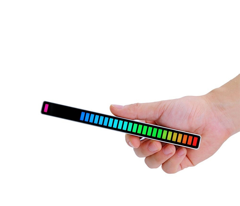 RGB Sound Control Pickup Rhythm Light Music Spectrum Display VU Meter 32PCS LED Beads Silver Shell