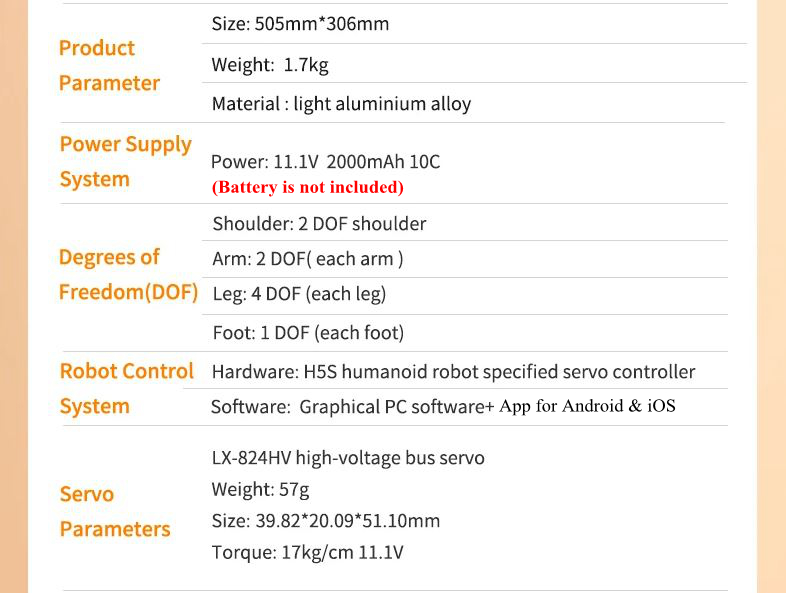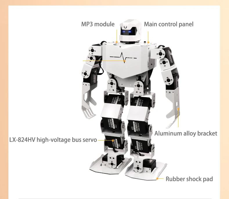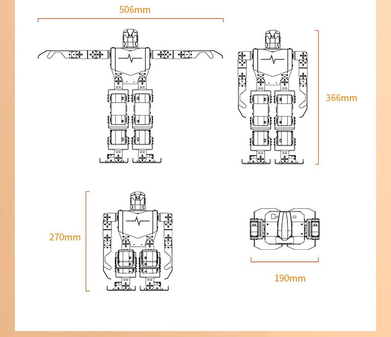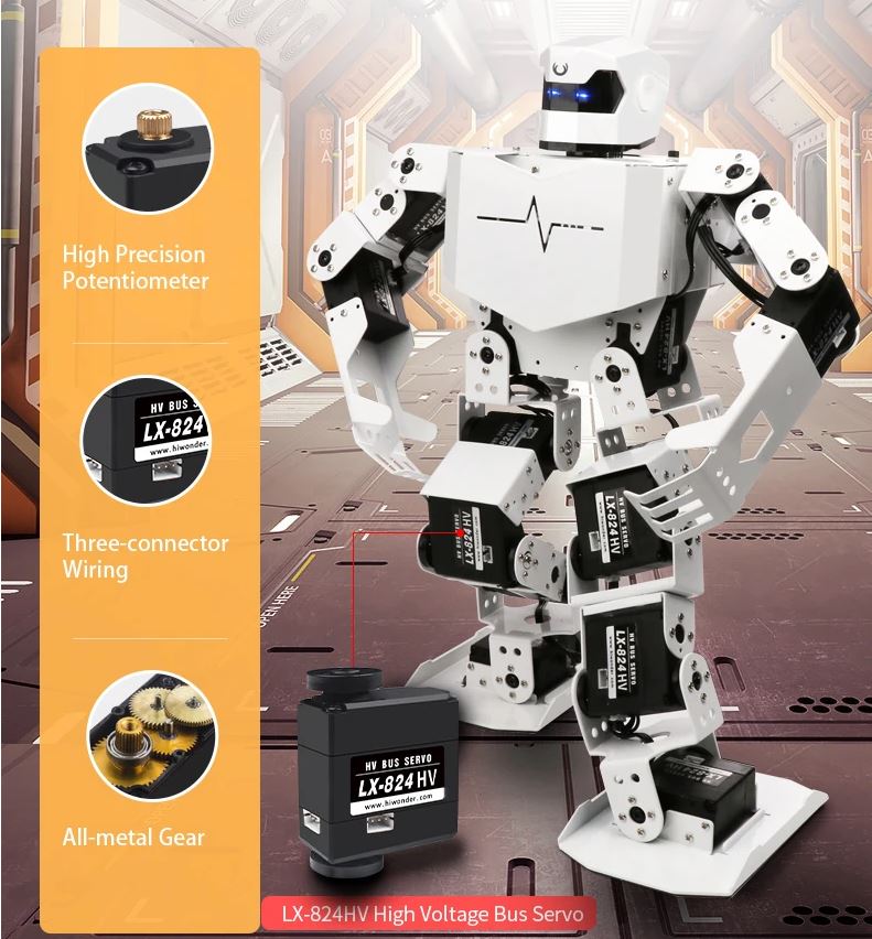 - High-Voltage Bus Servo: Uses 11.1V high-voltage bus servo, which is convenient for wiring. More efficient than 7.4V servo.