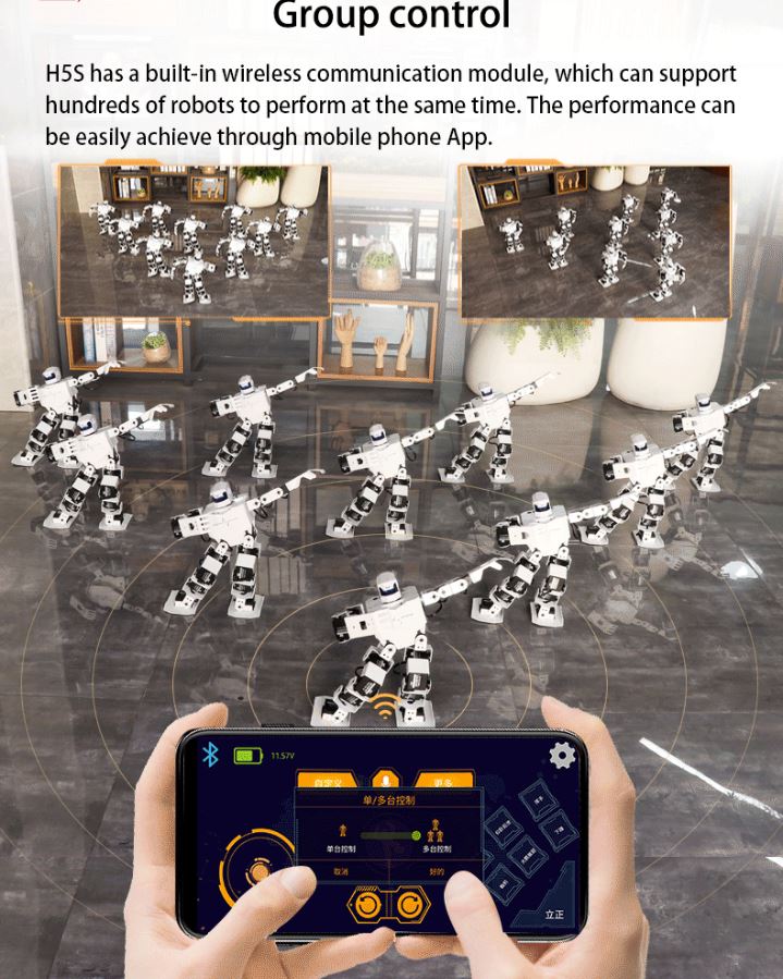 H5S supports mobile phone voice control, allowing you to easily play with the robot.