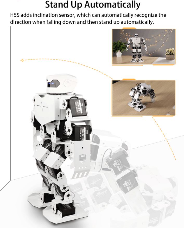 - Smart Standing Automatically: H5S adds inclination sensor, which can automatically recognize the direction when falling down and then stand up automatically.