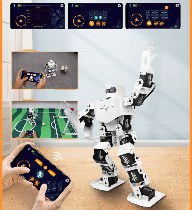 - Support mobile phone/tablet computer control, desktop computer control, controller control. Support mobile phone control for Android/iOS. Built-in dance mode, football mode and fighting mode.