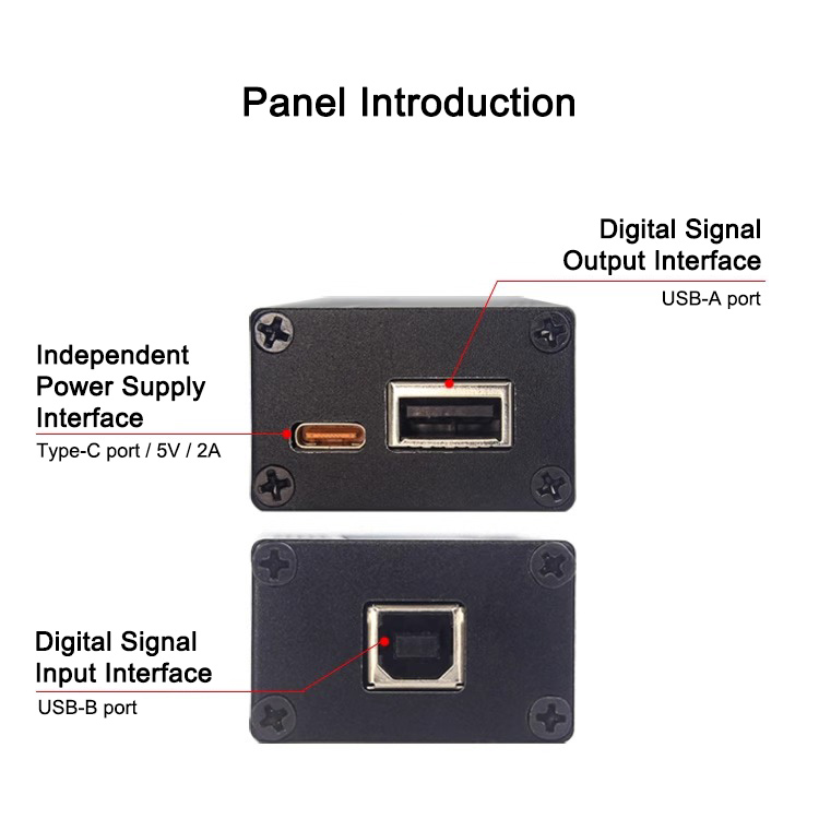 It is well known that computers generate significant noise during operation. For environments highly sensitive to noise—such as high-precision USB data acquisition systems, high-fidelity audio systems, and DACs—this device uses unique communication isolation technology to effectively isolate the USB interface, significantly reducing noise interference and ensuring pure and accurate signal transmission.