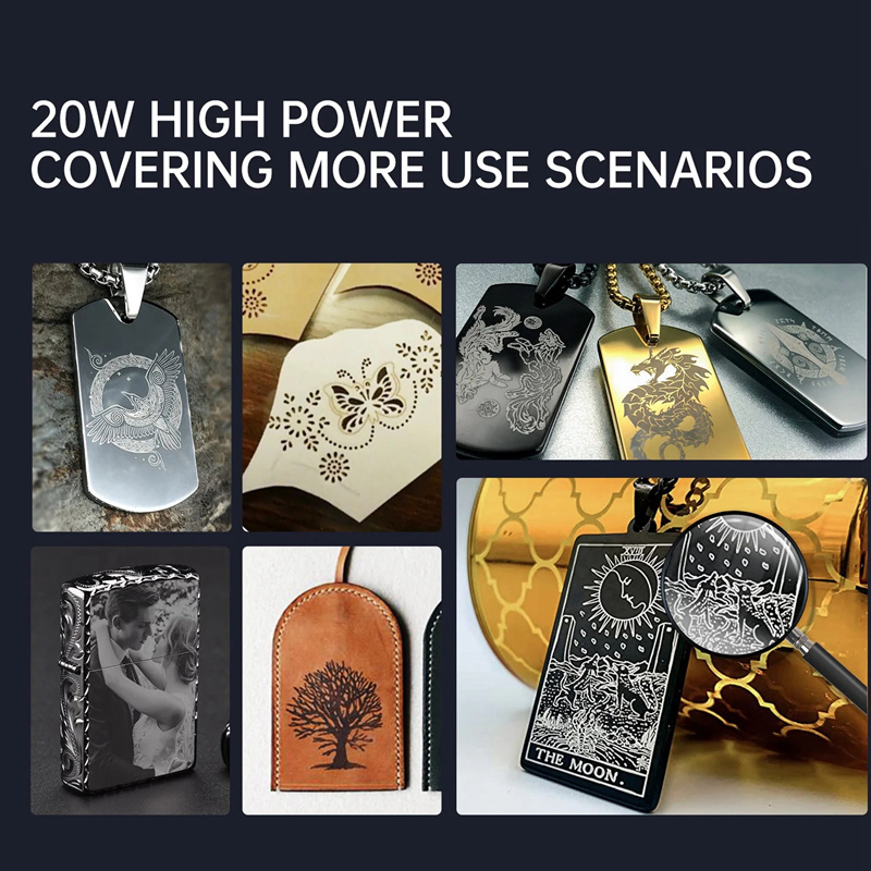 - Fine Marking Effects: S4-20W has a high power output, which means it is able to mark quickly and accurately on a wide range of material surfaces. Working area is 150x150mm/5.9x5.9". Whether the material is metal or plastic, the machine can easily cope with it and realize efficient marking operations.
