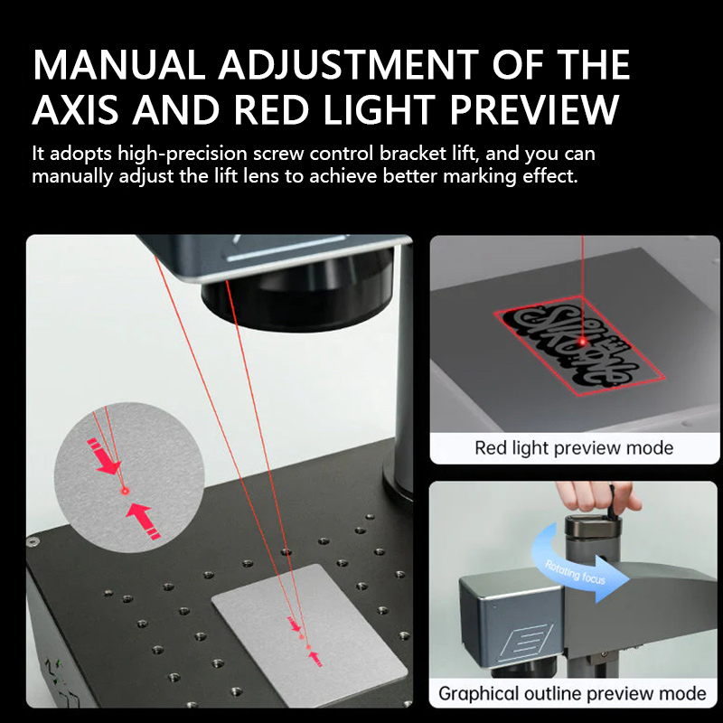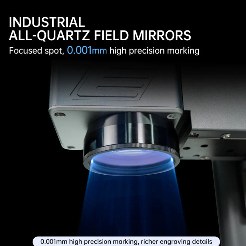 - More Efficient: The machine has a high-speed vibration lens scanner to reduce delay and error. It has high-definition laser field mirror and wide focusing range. It is wear-resistant and non-slip, enabling excellent marking.