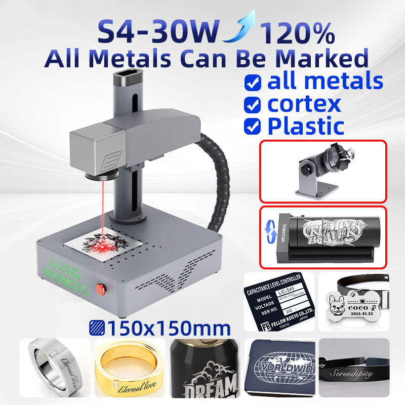 - High Power Output: Digital galvanomenter laser is built for efficient and precise laser marking experience. Equipped with 30W fiber laser, S4 is able to mark on all kinds of metals and plastics with high-quality outcomes.