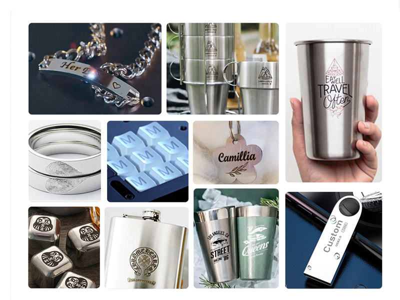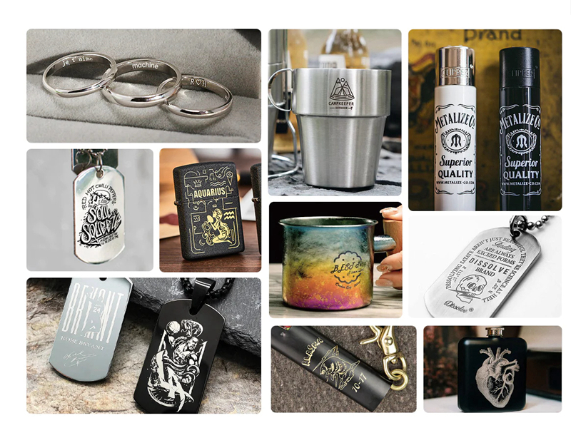 - Carvable Materials: For all metal and non-metal materials, including metal pet brand, metal pendant, stainless steel kettle, plastic button, PVC pipe, plastic shell, acrylic plate, leather wallet and wine jug, metal U disk, electroplated metal and stainless steel.