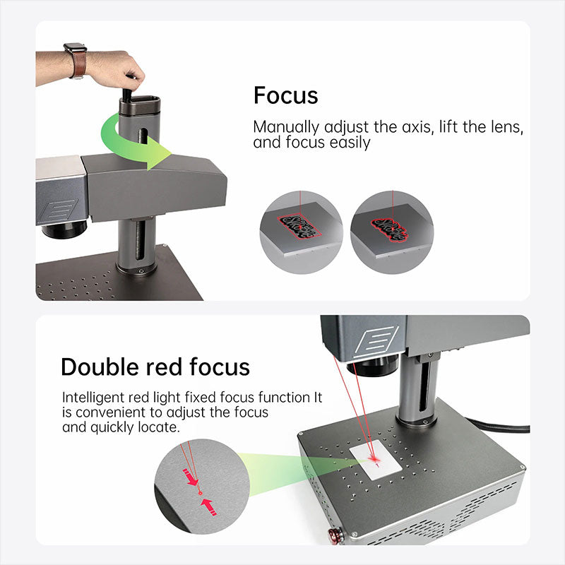 - More Efficient: The machine has a high-speed vibration lens scanner to reduce delay and error. It has high-definition laser field mirror and wide focusing range. It is wear-resistant and non-slip, enabling excellent marking.