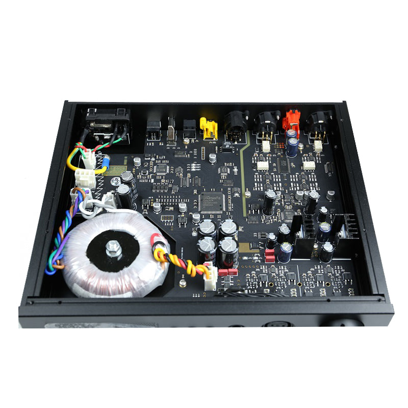 - XMOS's latest xCORE-200 series chip is adopted as the USB Audio solution. AK4497 is used as the DA conversion chip. AK4118 is used as digital audio input receiving chip, and STM32 is used as the control of the whole machine. The large-scale FPGA of Xilinx is used to process clock system and digital audio streams.