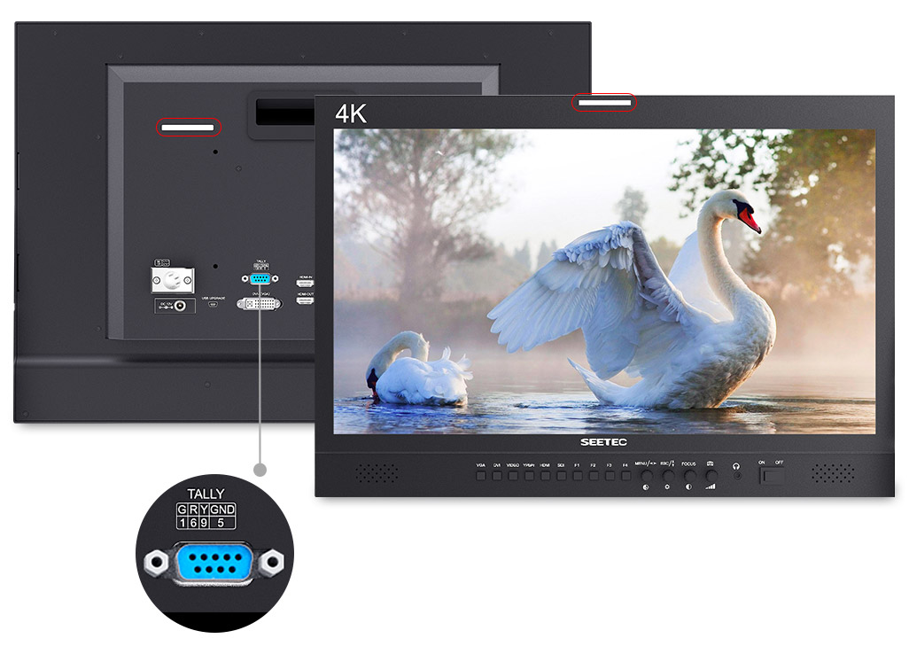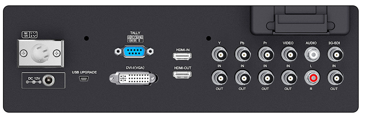 The monitor features clear LCD screens with tally so it's the perfect solution for live broadcasts. Unlike a simple tally light, it includes tally lights on the front and near panel displayed in red, green or yellow tally signal. This means during live production you will always know when you are recording or on-air, or you can see which camera is cued up on your switcher's preview output. Tally is connected via an industry standard parallel pin connector on the rear panel.