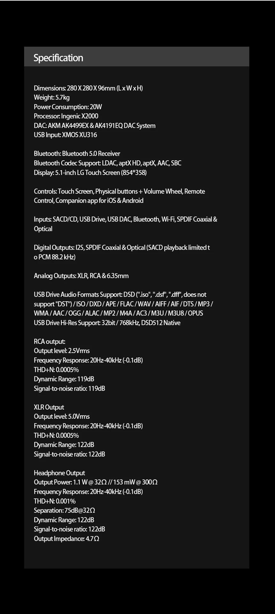 - For its multifunctional functions, SCD1.3 runs the latest generation system for MTouch, powered by the X2000 platform for Ingenic and controlled via a 5-inch touch screen. The new generation for MTouch offers improved speed, more precise response to touch controls, and simplified user interface, further tuned to the role of the CD player. For MTouch also unlocks the wireless capabilities of SCD1.3, a Bluetooth 5.0 receiver function that supports for LDAC, aptX HD and AAC, plus Wi-Fi connectivity, bringing functions for DLNA, Airplay and NAS.
