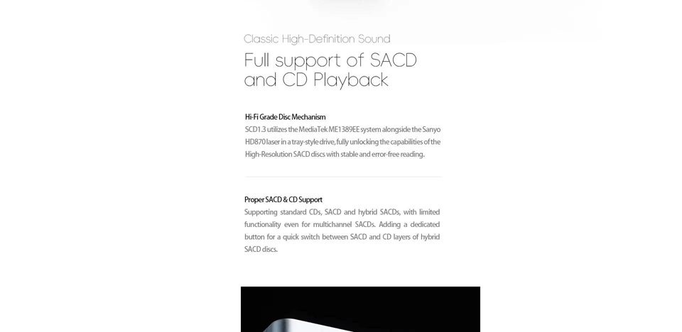 - From the SACD holder playback, SCD1.3 utilizes the ME1389EE system for MediaTek alongside the HD870 laser for Sanyo in the tray-style mechanism, fully unlock the capabilities of high resolution SACD discs and also serve standard CDs. And for hybrid SACDs, there is a dedicated button for easy switching between SACD and CD layers.