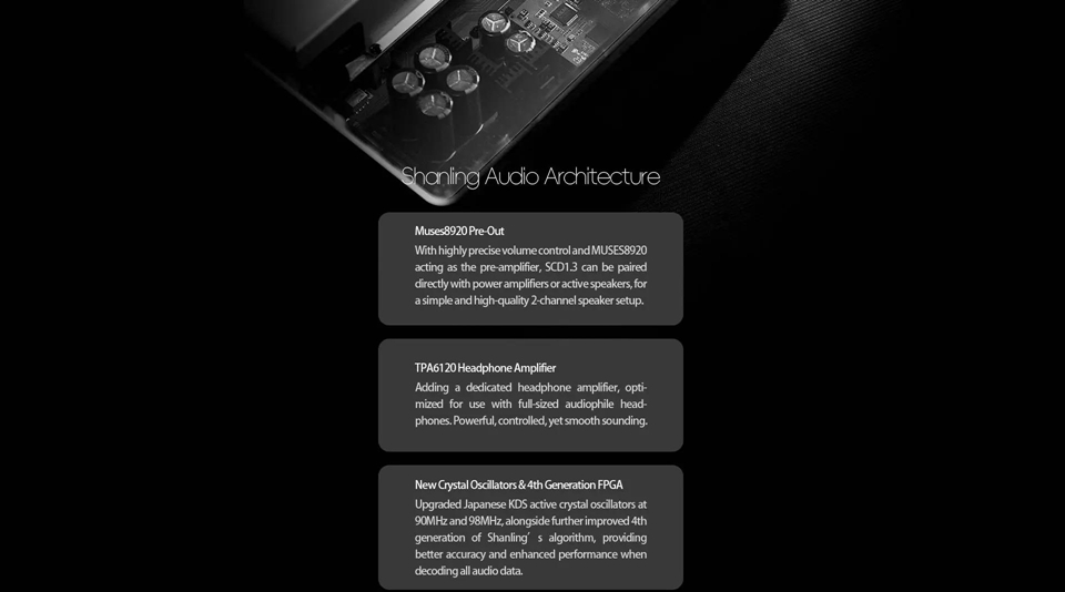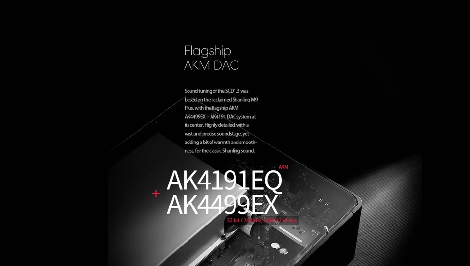 - The sound adjustment of the SCD1.3 was based on the main AKM AK4499EX + AK4191 DAC system. Highly detailed, with a vast and precise studio. With highly precise volume control and MUSES8920 acting as a preamp, the SCD1.3 can be paired directly with power amplifiers or active speakers for a simple, high-quality 2-channel speaker setup.