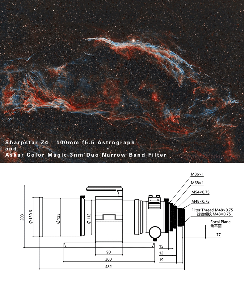 - According to user and market needs, Sharpstar has launched this all-in-one telescope Z4. Its caliber is 100mm, and the focal ratio is f/5.5. Z4 adopts a six-piece design with the front three pieces and the rear three pieces, with two pieces of ED glass. Like other series of telescope from Sharpstar, the Z4 also adopts a flat field design, which eliminates the need to calculate the post intercept during use and allows for focusing and shooting.