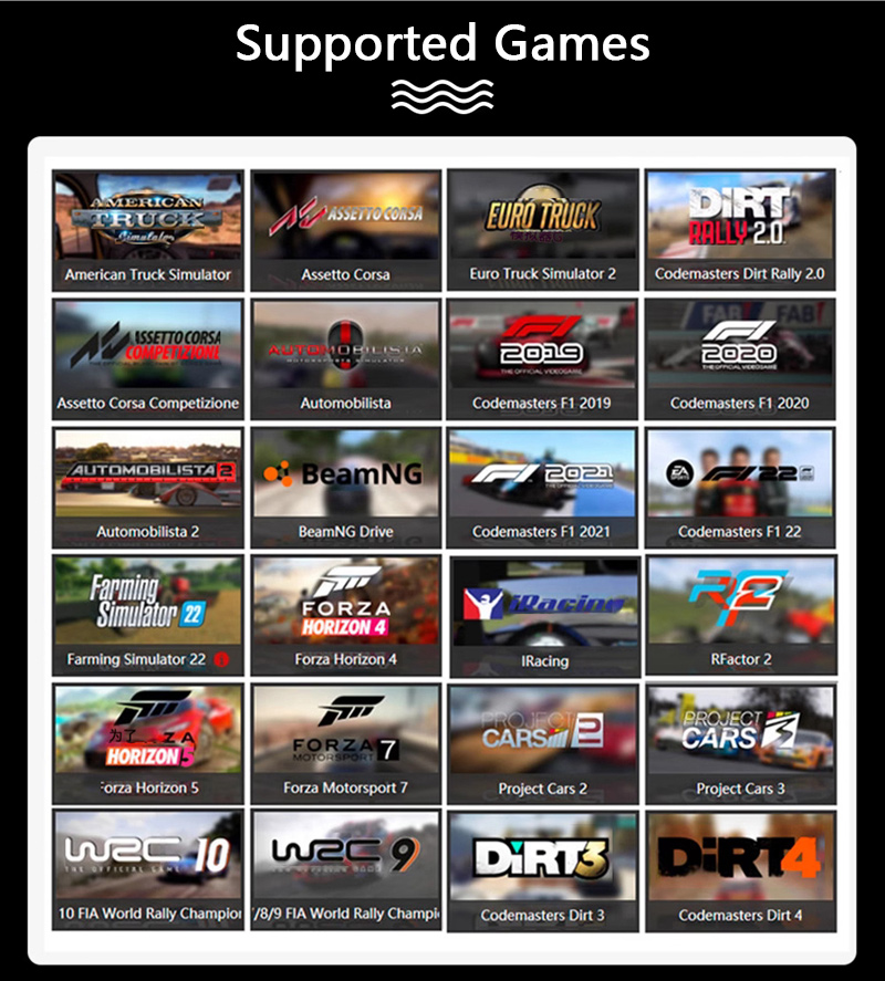 - 5" RGB dashboard: It is designed for racing games. Players can view more than ten key race data, including engine RPM, speed per hour, gear, current lap, tire temperature, fuel level and time difference with opponents.