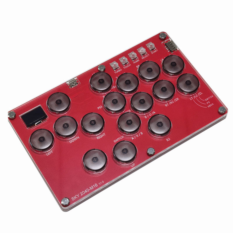 SimPlayer SP2040 M16 16-Button Hitbox Controller Arcade Stick (Red Panel & Transparent Gray Buttons)