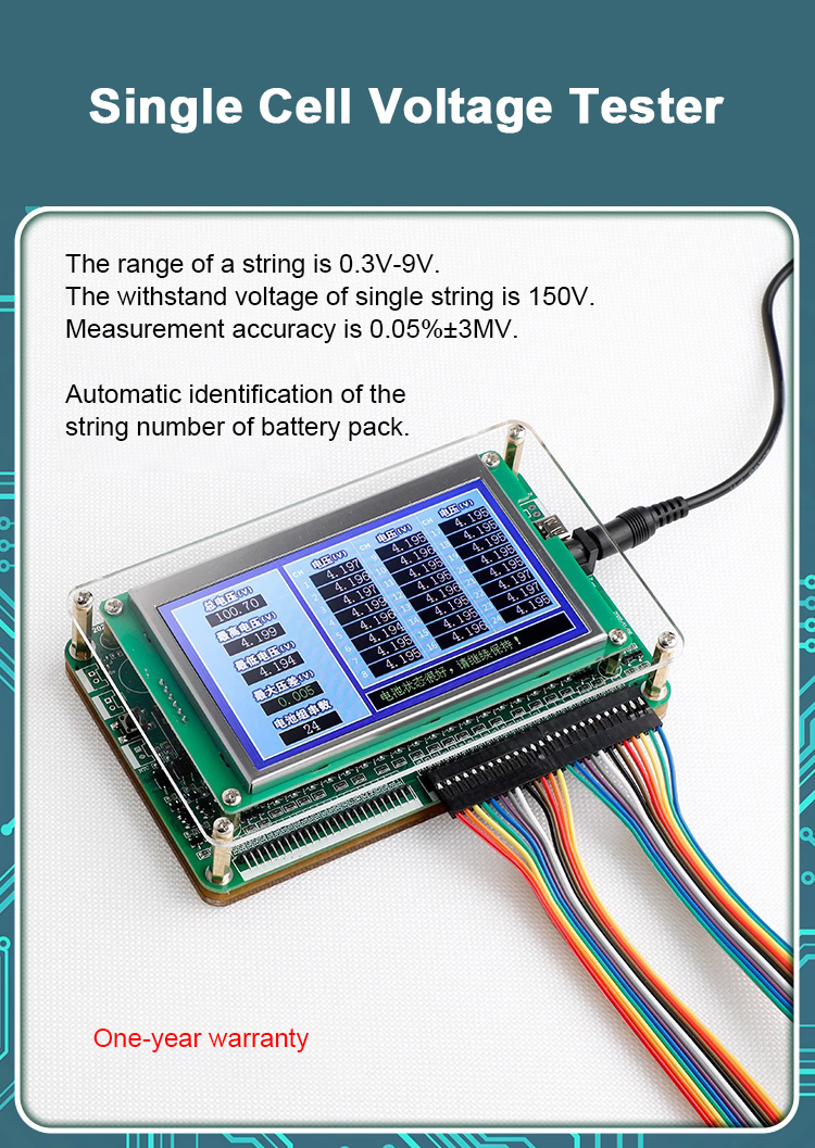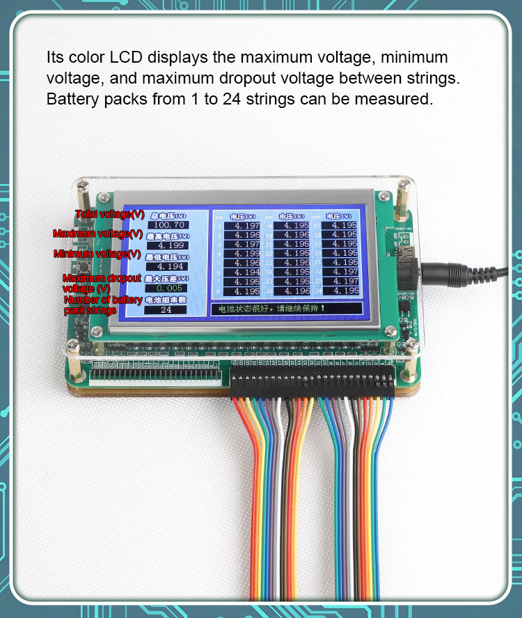 Single Cell Voltage Tester w/ Power Cable Expansion Board Pin Headers for 1-24S Lithium Battery Pack