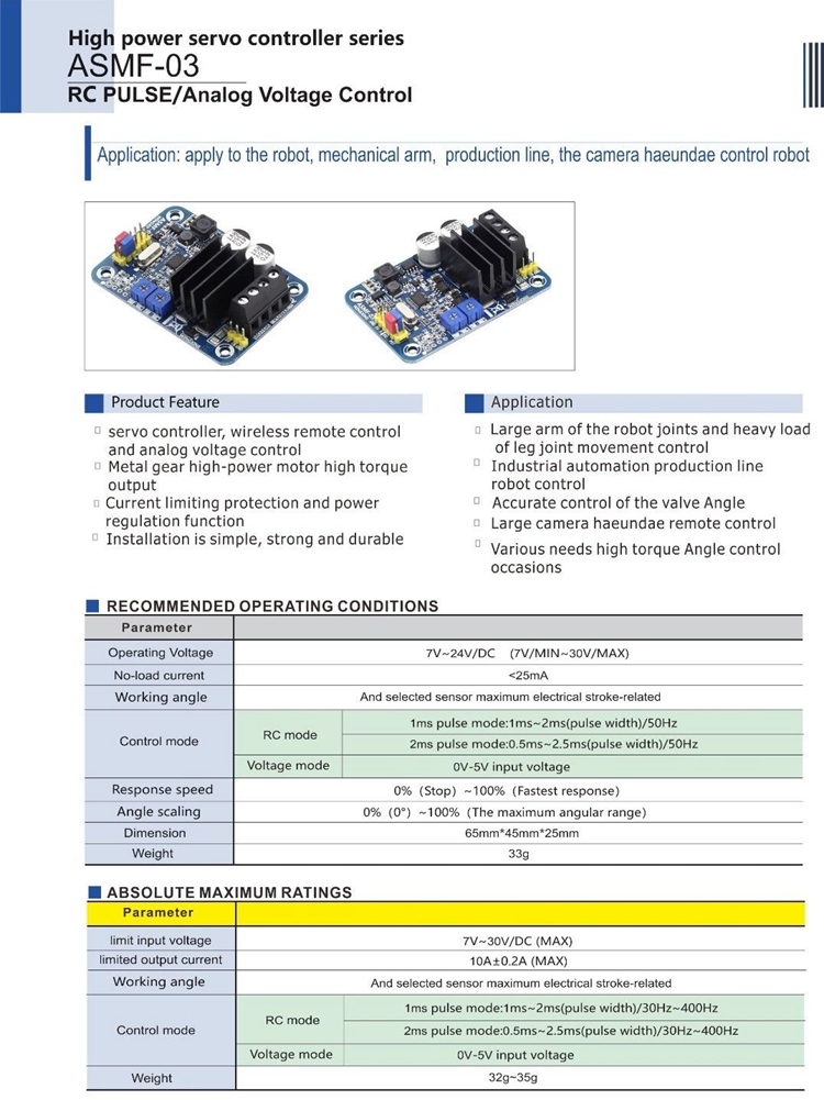 Single Channel Servo Controller Board High Torque 500N.m 7-30V 10A for Servo DIY ASMF-03