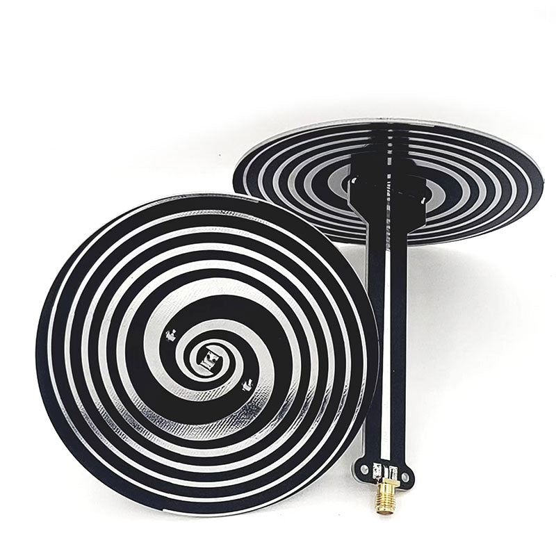 - The antenna is an ultra wideband equiangular spiral + Archimedes circularly polarized antenna, which is divided into sinistral rotation circularly polarized antenna and dextral rotation circularly polarized antenna. It can be used for direction finding, spectrum analysis, signal analysis, navigation and positioning, broadband measurement, direction finding, etc. It can provide 36dBi circular polarization directional gain in the frequency band range of 900MHz - 10GHz. With low standing wave and high gain, this antenna can be used at typical operating frequencies: 915MHz, 1090MHz ADS-B, 1268MHz - 1610M HzGPS, 1420MHz, 2.4GHz/5.8GHz.