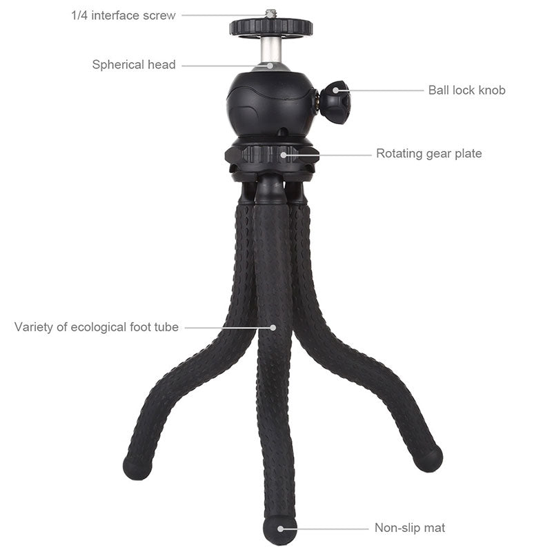 Small Flexible Octopus Tripod Camera Tripod with Ball Head + Phone Clamp + Base For GoPro PKT3041