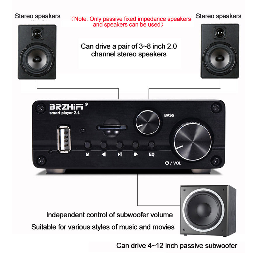 Smart Play 2.1 200W 2.1 Channel Amplifier Bluetooth 5.0 HiFi Assembled with FM Antenna Power Supply
