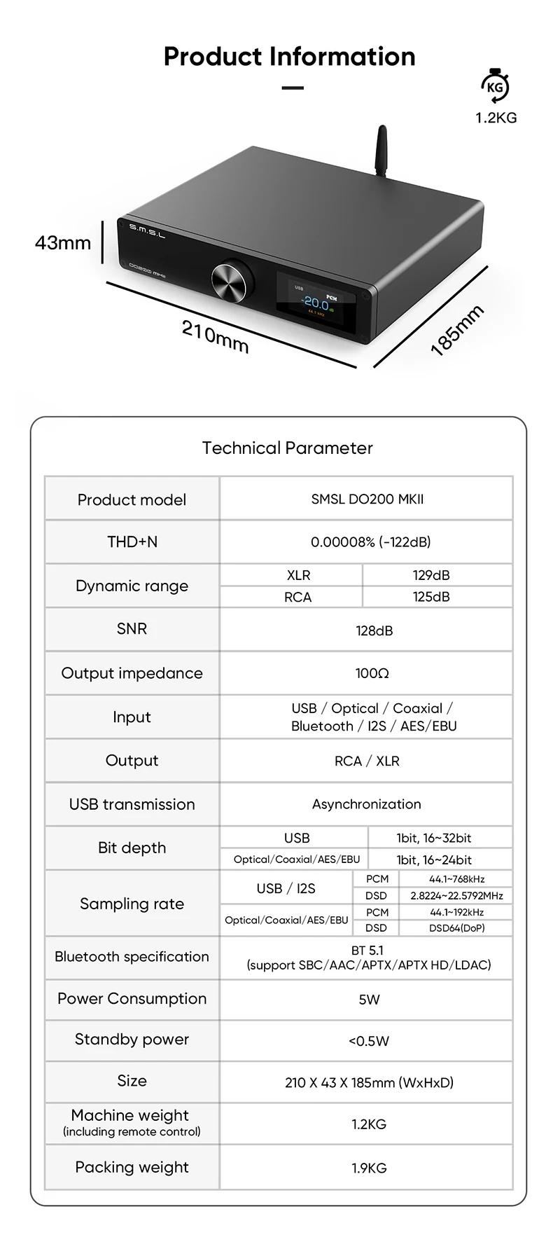 SMSL DO200 MKII Dual ES9068 MQA Pure Audio Decoder Bluetooth5.0 High Performance DAC Asynchronous Transmission