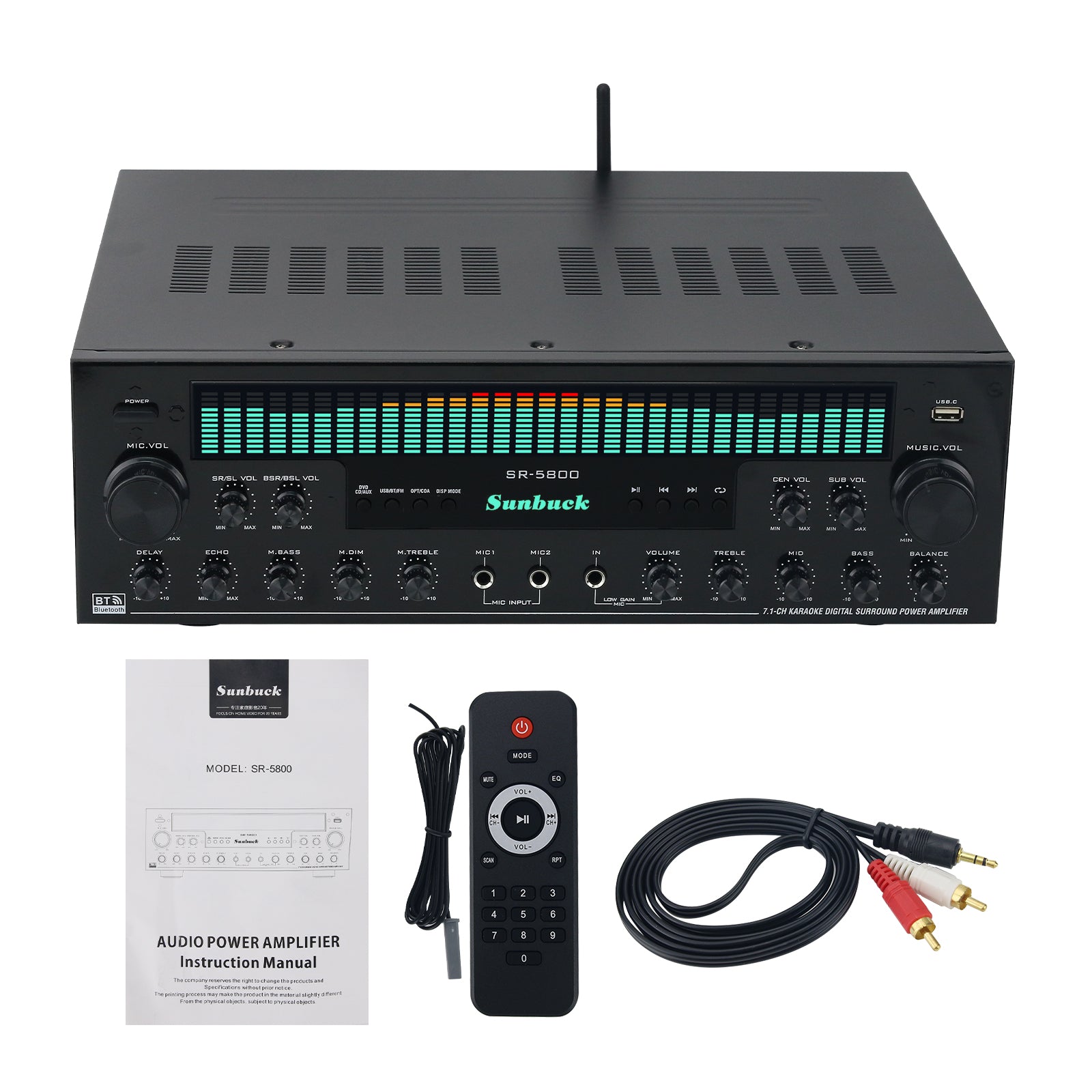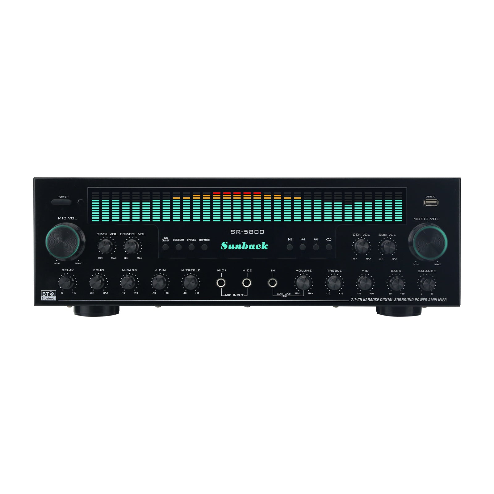 SR-5800 1200W 220V 7.1 Channel Amplifier Bluetooth Amplifier Karaoke Digital Surround Power Amp