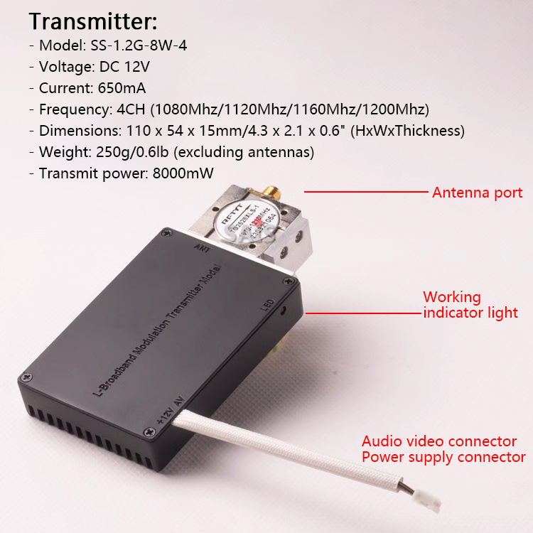 SS-1.2G-8W-3 Wireless Video Transmission System 1.2G 8W Wireless Video Transmitter Receiver Modules