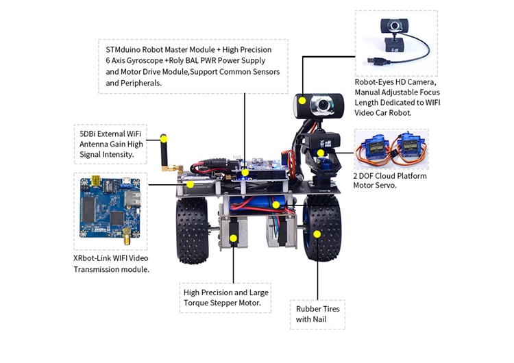 - WiFi Communications: Built with WiFi module, it enables real-time transmission and mlutiple remote control ways.