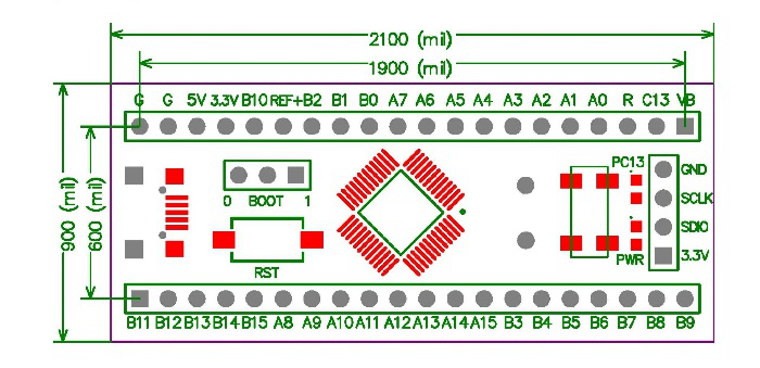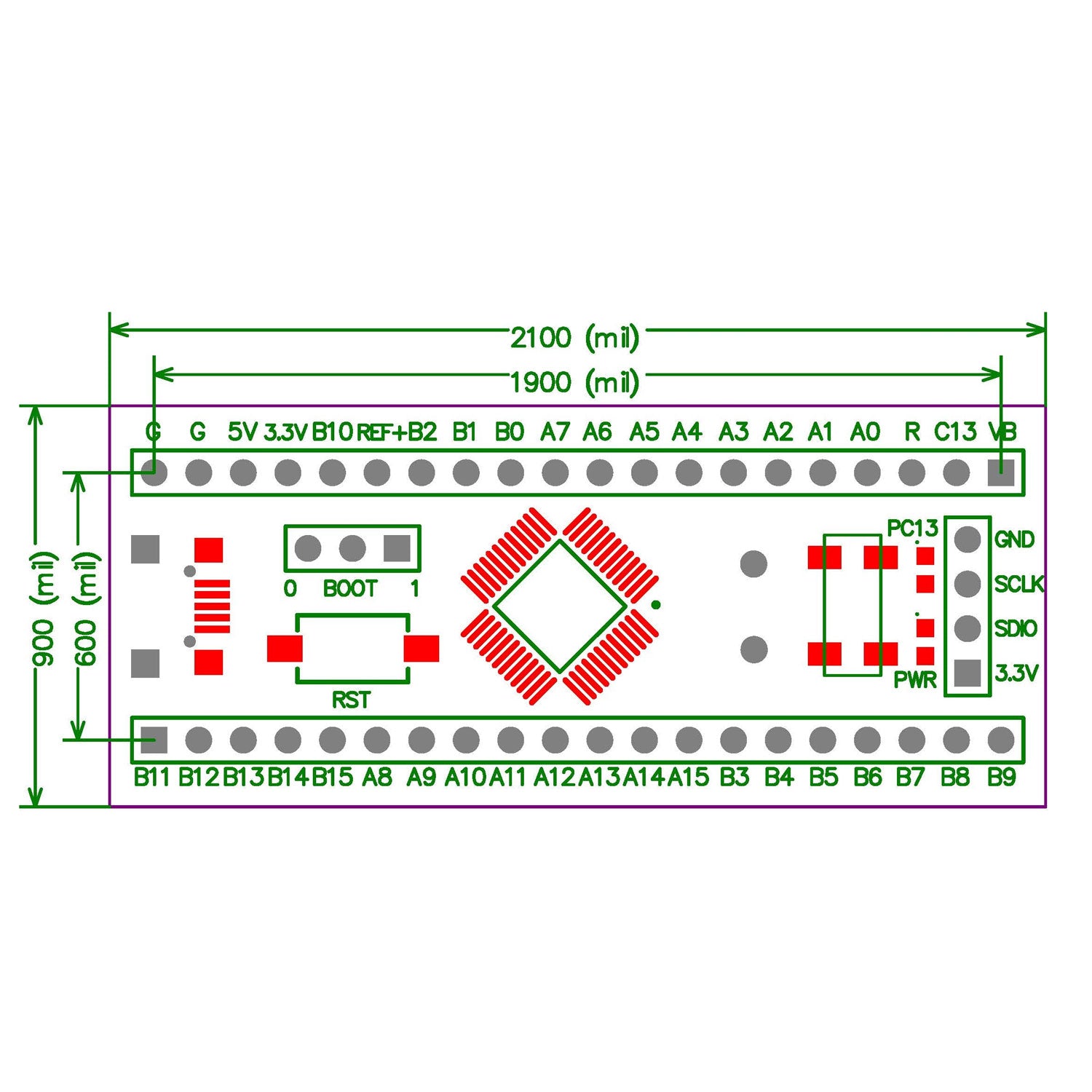 - Small size. STM32G474CET6 core board is 53.34mm*22.86mm (i.e. 2100mil*900mil)