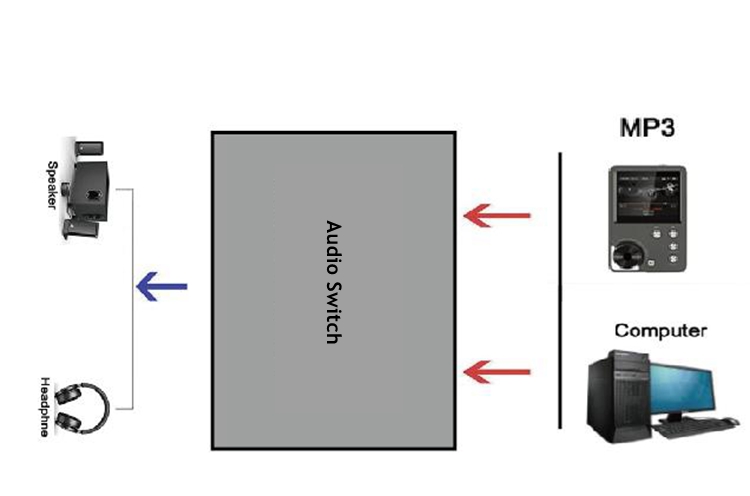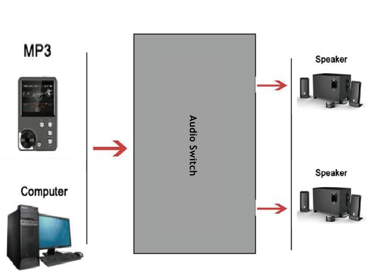 - Two signal source inputs, connect two power amplifiers for output, and switching between the two power amplifiers. Or two signal sources input switch and one power amplifier for output.